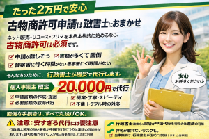 たった20,000円で安心! 古物営業許可は行政書士にまるっとお任せ!