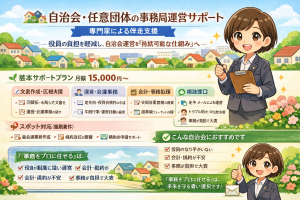 こんなお悩みはありませんか? 役員のなり手がいない 高齢化で事務作業が回らない 会計や規約の管理が不安 行政対応が難しい 一部の役員に負担が集中している これらは、多くの自治会が抱える共通の課題です。 自治会運営を「抱え […]