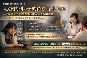 心療内科の予約待ちで苦しむ方へ“受診までの空白期間”を支える相談室 ― ひとりで抱えなくて大丈夫です ― 「予約が取れない」「本当に病院に行くべきか分からない」「誰にも相談できず、毎日がつらい」 そんな状態で、ひとりで耐 […]