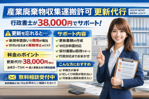 産業廃棄物収集運搬許可 更新代行 行政書士が38,000円でサポート!