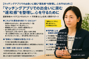 マッチングアプリの「違和感」を解消。キャリアコンサルタント×行政書士が寄り添います。