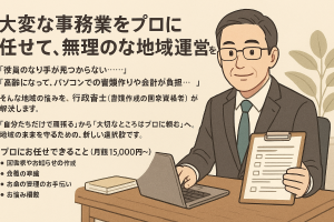 「役員のなり手がいない…」「事務作業が多すぎて大変…」 そんなお悩みを、地域の専門家が解決します。 これからの自治会運営は、すべてを役員だけで抱え込む必要はありません。 行政書士が事務局業務をバックアップすることで、「無 […]